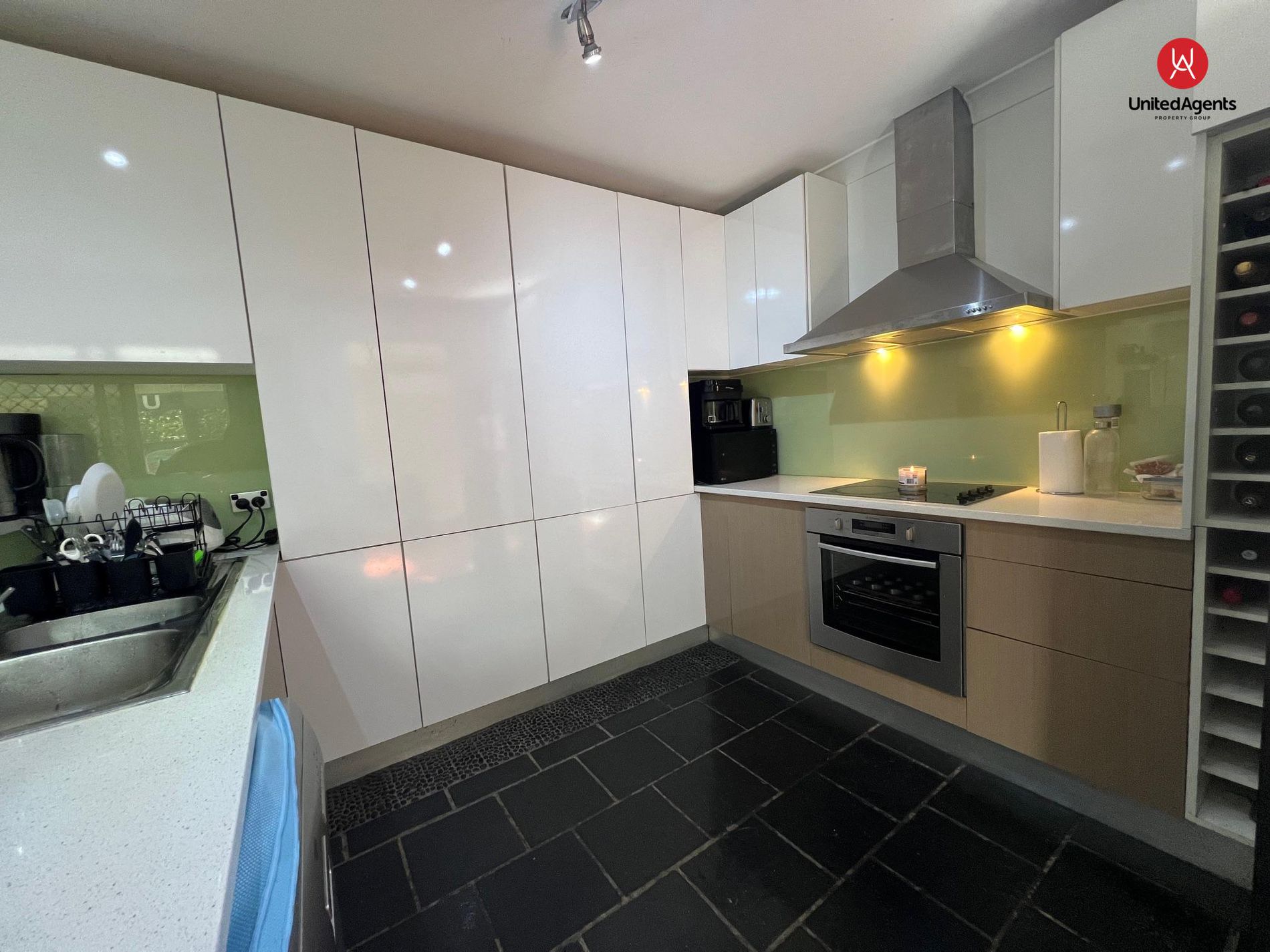 - Large kitchen with island bench