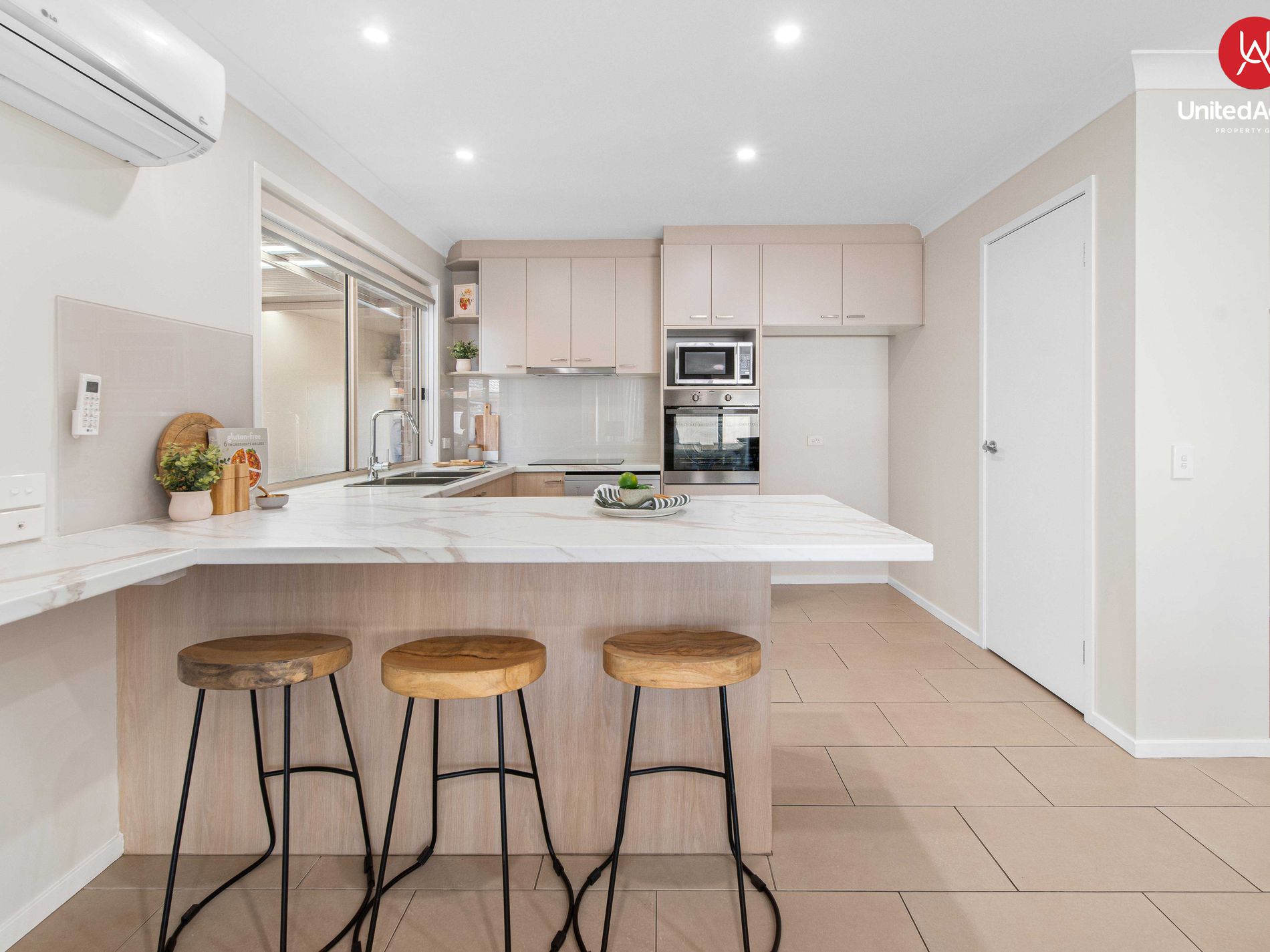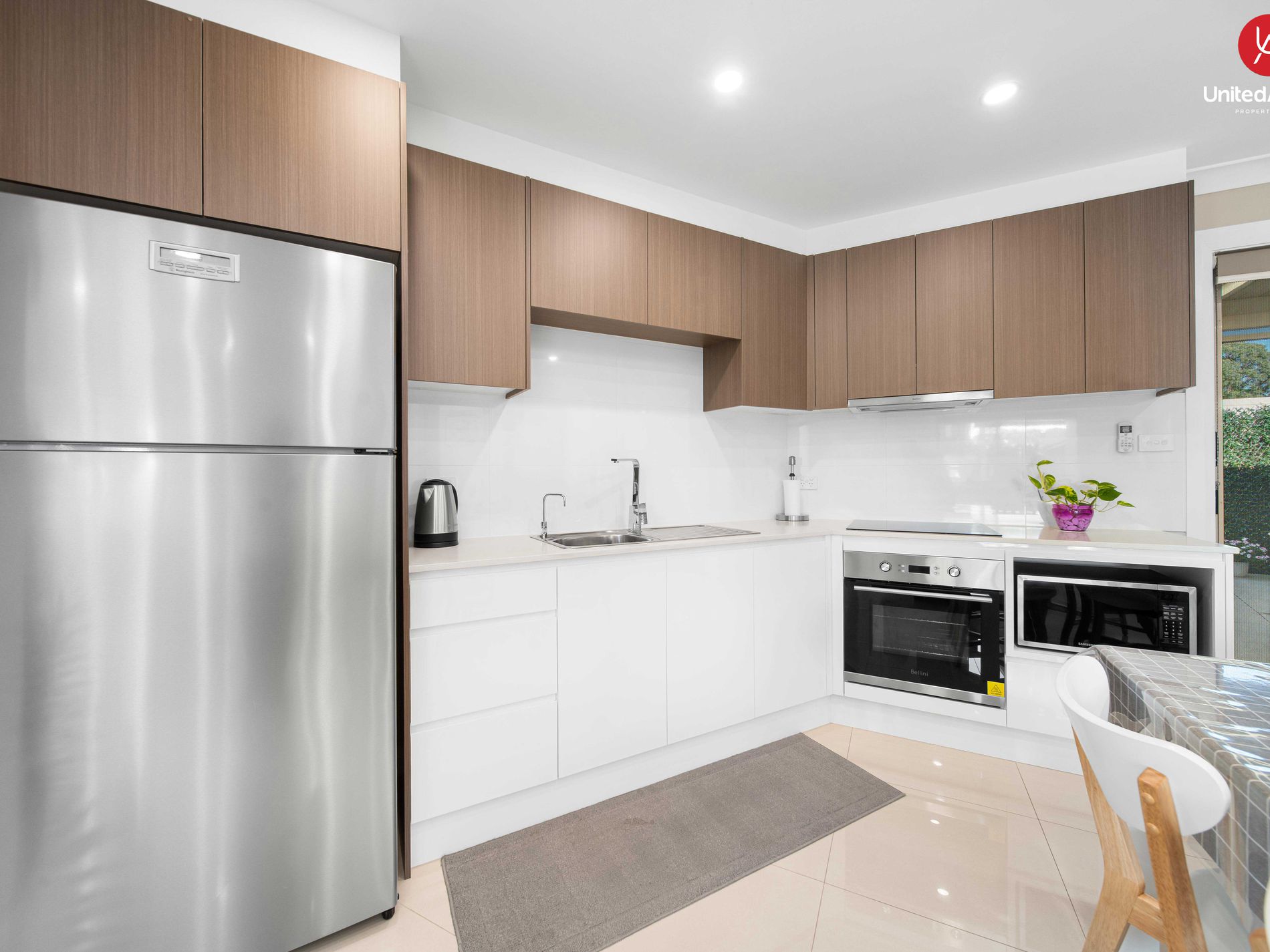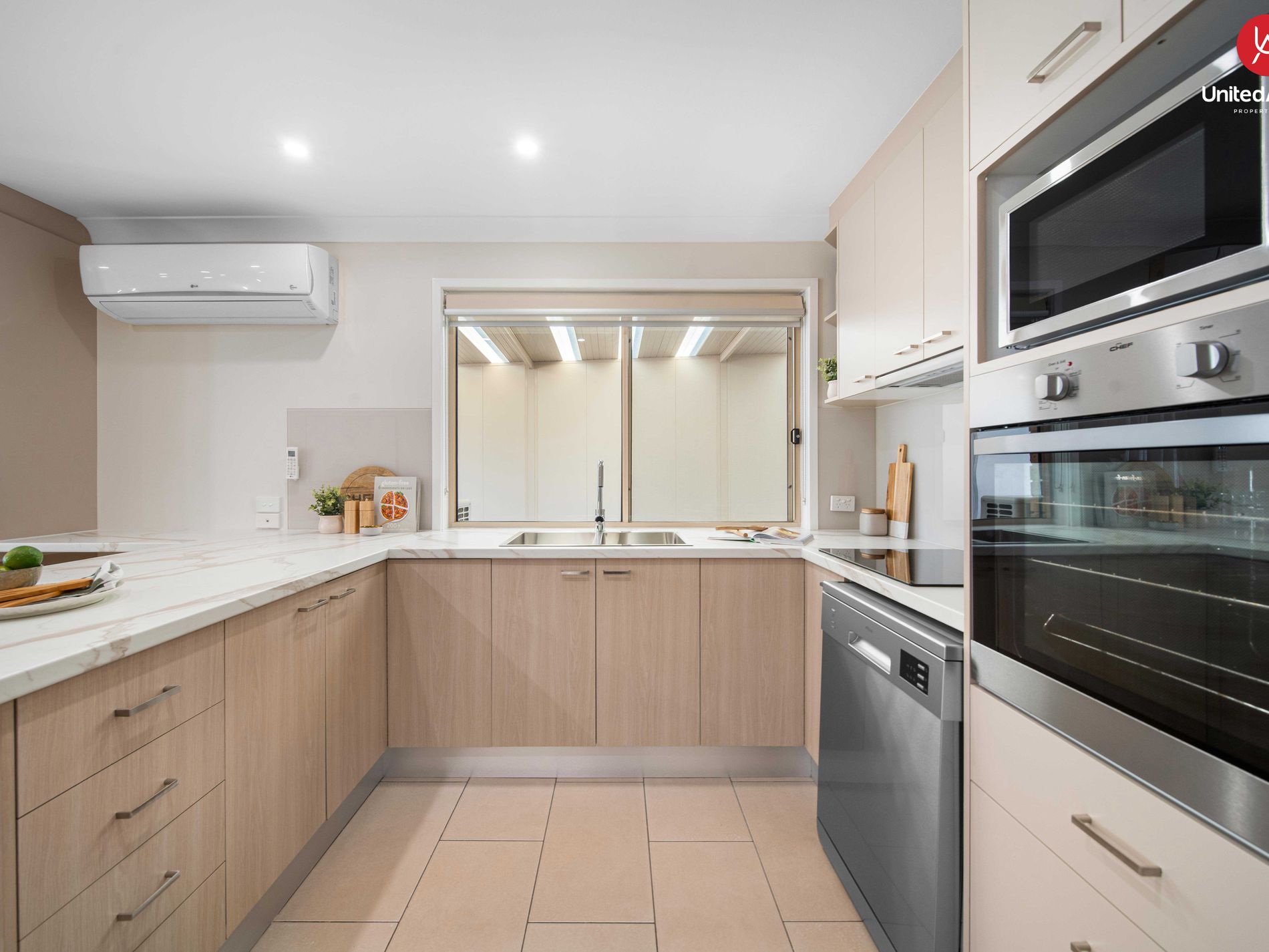 - Modern kitchen with stone bench tops & plenty of storage space.